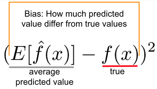 수식: f(x)=정답, f^(x)=예측값, E[ ]=기대값=평균