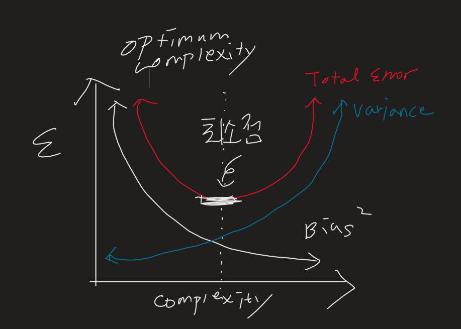 따라서 모델의 복잡성을 최적화(Optimum Model Complexity)시키는 작업이 필요합니다.